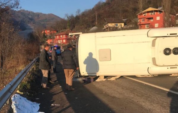 Zonguldak- Ankara Karayolu Karaman mevkiinde meydana gelen kazada, TTK maden işçilerini taşıyan servis sürücüsünün kontrolünden çıkarak devrildi. Kazada 17 maden işçisi yaralandı.