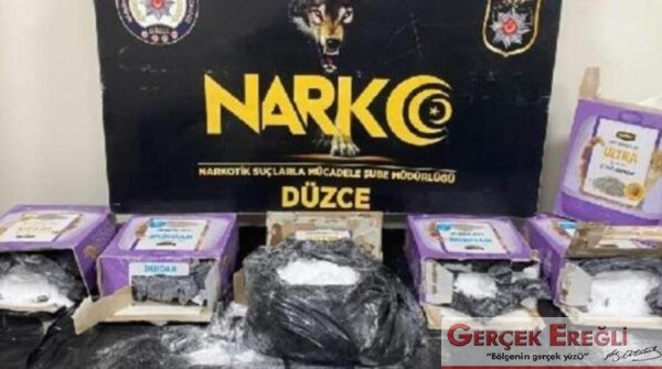 Düzce’de yolcu otobüsünde yapılan aramada 25 kilo 248 gram metamfetamin ele geçirildi; 2 şüpheli gözaltına alındı.