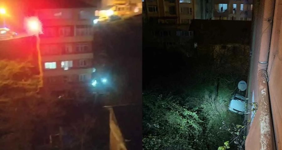 Araç, 20 metre yükseklikten binanın bahçesine uçtu…