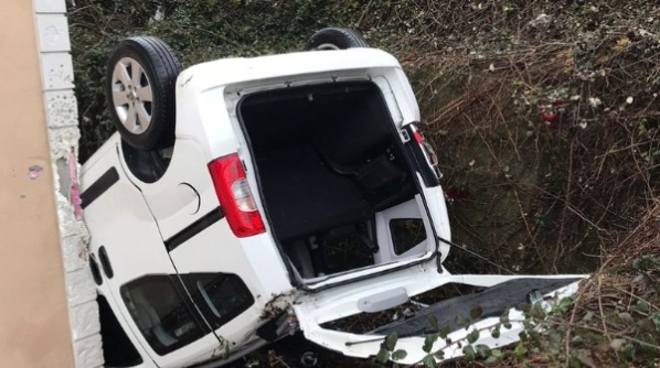 Zonguldak’ta Bahçelievler Mahallesi Sarmaşık Sokak’ta sağanak yağış nedeniyle sürücüsünün kontrolünden çıkan hafif ticari araç 20 metre yükseklikten evin önüne uçtu. Kazada 2 kişi yaralandı.