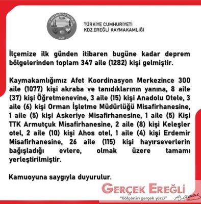 Konuya ilişkin olarak Kdz. Ereğli kaymakamlığının yaptığı açıklama şöyle: