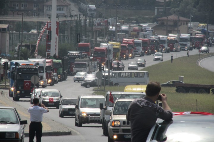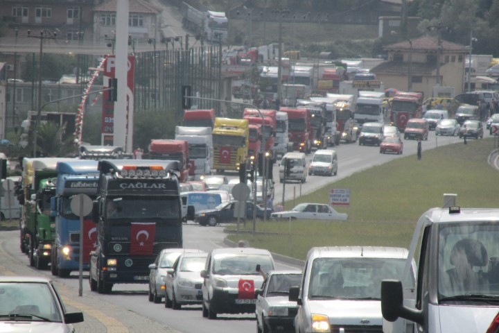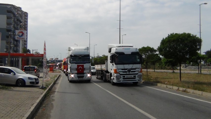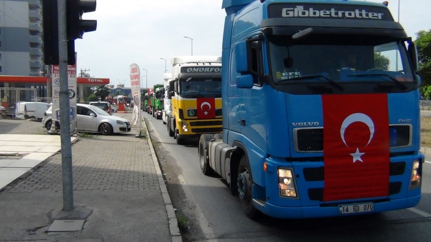 Konvoya yoldan geçen diğer araçlar kornaları ile çevredeki vatandaşlarda ise alkışlarla destek verdiler. Peşin sıra ilerleyen tırlar Devrek Yolayrımı, Yeşiltepe, Kepez istikameti sonrası dönüş yaparak çarşı merkezi güzergahına seyir ettiler.