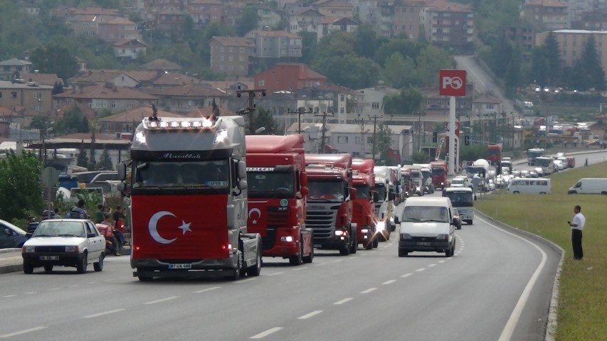 Zonguldak’ın Ereğli İlçesi’nde yaklaşık 70 tır şoförü, yaşanan terör olaylarını protesto etmek için konvoy düzenleyerek klakson çaldı.
