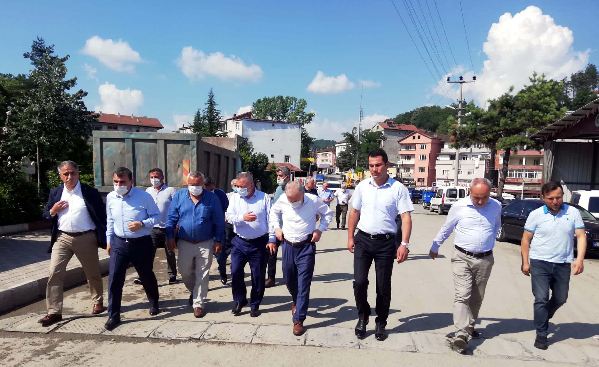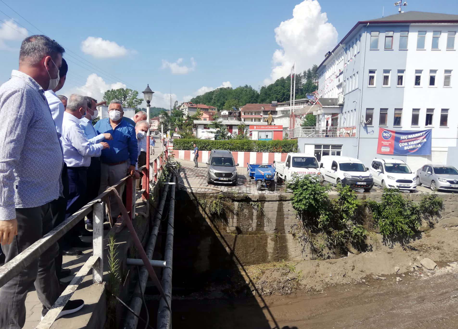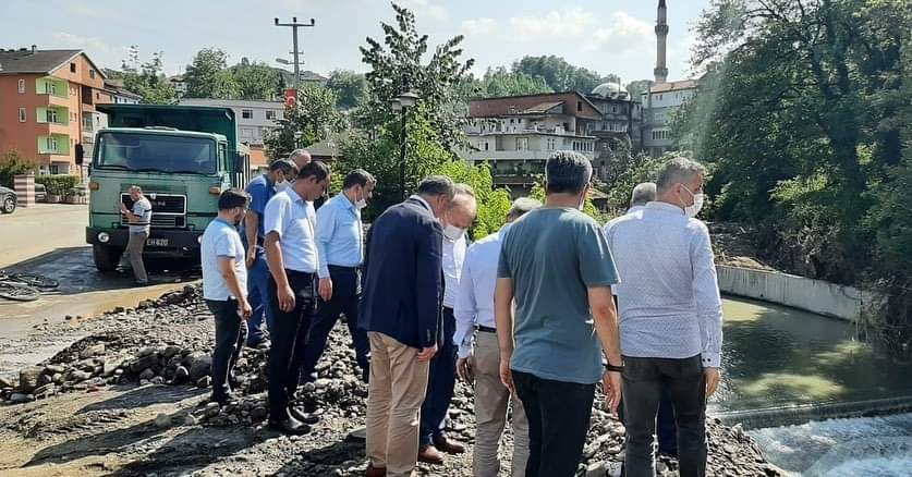 Sel felaketi yaşayan Ormanlı‘ya giden AK Parti Zonguldak Milletvekilleri Polat Türkmen, Ahmet Çolakoğlu ve Hamdi Uçar, beldede incelemelerde bulundu.