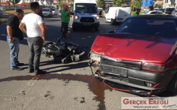 Zonguldak’ta motosiklet ile otomobilin çarpıştığı trafik kazasında yaralanan motosiklet sürücüsü olay yerine gelen ambulansla hastaneye kaldırıldı.