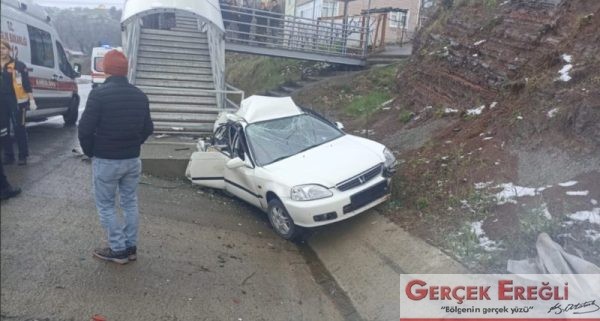 Kaza, ilçeye bağlı Ören Mahallesi’nde meydana geldi.  İddiaya göre, Zonguldak-Ereğli yolu üzerinden şehir merkezi istikametine giden 41 ANS 383 plakalı otomobil sürücüsü O.M. (22), direksiyon hakimiyetini kaybettiği otomobil ile duvara çarptı. Çarpmanın etkisiyle yaralanan O.M. için 112 sağlık ekiplerine haber verildi. Kısa sürede olay yerine gelen sağlı ekipleri O.M. ’ye yaptıkları ilk müdahalenin ardında hastaneye kaldırıldı. Kazda kullanılamaz hale gelen otomobil çekici yardımı ile kaldırılırken olayla ilgili soruşturma başlatıldığı öğrenildi.