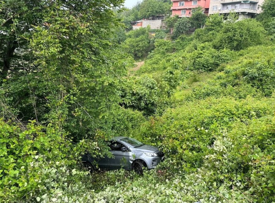 Sürücünün kontrolünden çıkan araç, ormanlık alana uçtu…