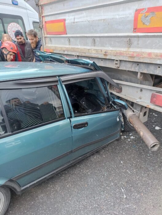 Karadeniz Ereğli ilçesinde meydana gelen kazada araç TIR’ın altına girdi. Araçta sıkışan sürücüyü itfaiye ekipleri zorlukla çıkardı.