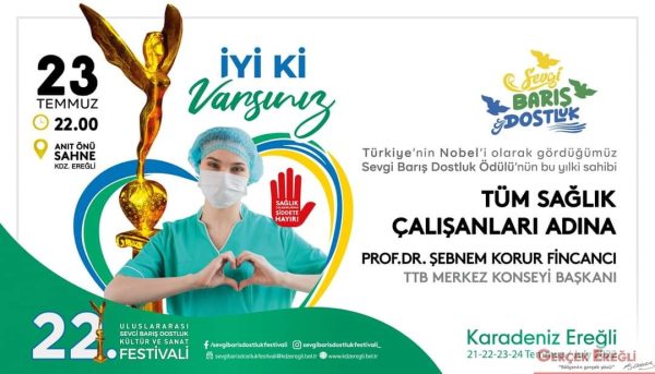 Kdz. Ereğli Belediyesi tarafından ilçemizde düzenlenen Sevgi Barış dostluk Festivali’nde bu yıl Sevgi Barış dostluk adı altındaki ödülün daha önce ‘terör örgütü PKK propagandası yapmaktan’ ceza alan, Türkiye’nin Ermenilere sözde soykırım yaptığı yalanını savunan ve terör örgütü elebaşısı Abdullah Öcalan’a sözde özgürlük platformu kurucuları arasında yer alan Türk Tabipler Birliği Başkanı Prof. Dr. Şebnem Korur Fincancı’ya verilmesini kınıyoruz.