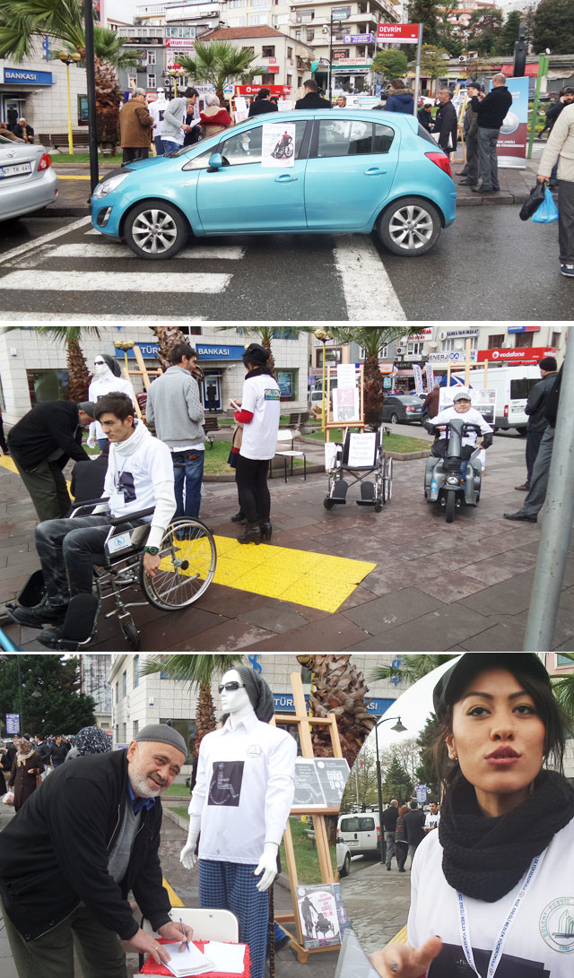 “Sınıfımızdaki bir engelli arkadaşımız, yaşadığı zorlukları içiren bir fotoğraf albümü ile çalışma yaparak Belediye yetkililerine teslim etmişti. Biz de arkadaşlarımızla birlikte, aynı zamanda ders olan sosyal sorumluluk projesi kapsamında, engelli arkadaşımızın çalışmasından esinlenerek bu etkinliği düzenledik. Birçok engelli geçidinin uygunsuz parklar nedeniyle işgal edildiğine şahit oluyoruz. Bu nedenle de engellilerimiz zor durumda kalıyor. Hazırladığımız stant ve dağıttığımız broşürlerle, engelli vatandaşlarımızın da aynı zamanda toplumda birer birey olduğunu anlatmak istedik.”