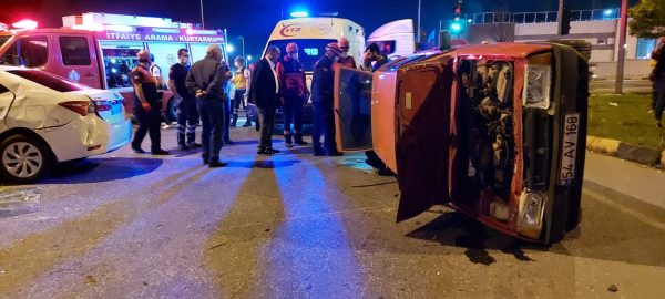 Zonguldak’ın Ereğli ilçesinde iki otomobilin çarpışması sonucu meydana gelen trafik kazasında bir otomobil takla attı.Kazada şans eseri yaralanan olmazken araçlarda büyük maddi hasar oluştu.