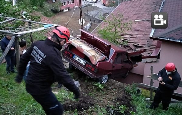 Zonguldak’ın Ereğli ilçesine bağlı Kandilli Beldesinde sürücünün direksiyon hakimiyetini kaybettiği otomobil evin çatısına uçtu. Kazada yaralanan bir kişi olay yerinde yapılan ilk müdahalenin ardından devlet hastanesine kaldırıldı.