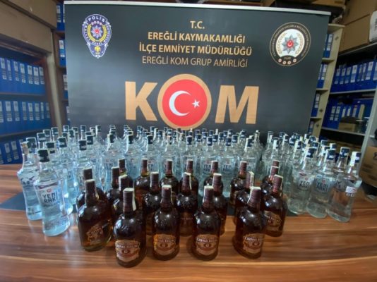 Zonguldak’ın Ereğli ilçesi İlçe Emniyet Müdürlüğü KOM  Grup amirliği tarafından düzenlenen operasyonda ilçeye sahte/kaçak alkol getiren  şahıslar yakalanarak gözaltına alındı.