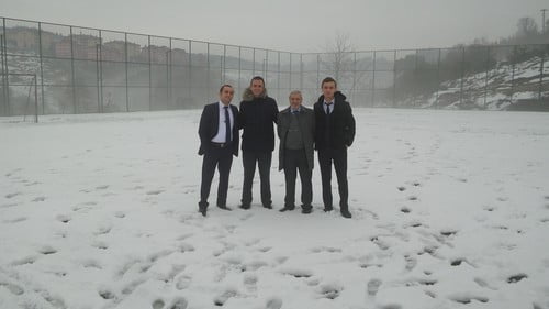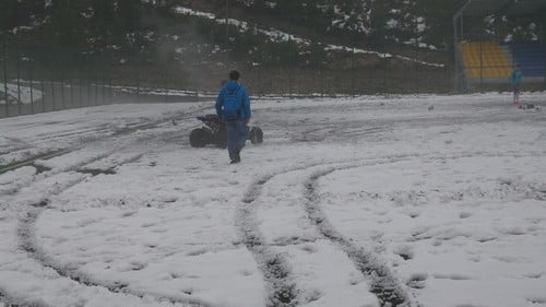 Karşılaşmanın ertelenmesinin ardından kar temizleme çalışmaları başladı.