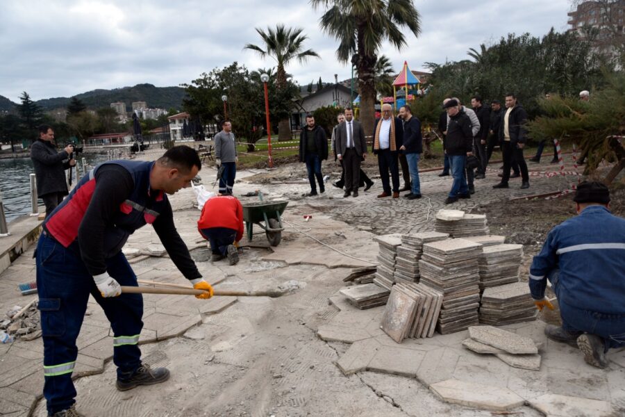 “Sahildeki çalışmalarımız bütün hızıyla devam ediyoruz. Sözümüzde duracağız. Yaz ayında buralar pırıl pırıl olacak inşallah. Şuanda ekiplerimiz eksiklikleri tamamlıyor. Yıkılan yerleri yapıyor. Yeni istinat duvarı ihalesine çıktık. İhaleden sonra taş duvarlar, istinat duvarları yapılacak. Bu arada deniz kenarına düz beton yapacağız. Helikopter betonu diye adlandırılıyor. O betondan yapacağız ki taş sıyrılması olmasın. Bir taraftan da Park ve Bahçe ekipleri çimleme çalışmalarını yapıyorlar. Şuanda 4 tane başkan yardımcımız İstanbul Büyükşehir Belediyesi’ne çağrıldılar. Orada hazırlanan proje üzerinde çalışıyorlar. İBB’den gelecek bir takım malzemelerle beraber burayı yeniden güzelleştirmeye çalışacağız. Bütün hedefimiz yaz ayında halkımızın rahat bir şekilde gezebileceği, eski ortamlardan daha güzel bir yenilik yapmak için bütün ekiplerimiz canla başla çalışıyor. Eskiyi yeni yapmak kadar zor bir şey yok ama biz bu işte tecrübeliyiz. Bu sahili 25 senede oya işler gibi işleye işleye bu hale getirdik. Felaket, fırtına perişan etti ortalığı. Ama yine bu sahili daha güzel hale getirmek için bütün gücümüzle çalışacağız. İnşallah her şey çok güzel olacak.”