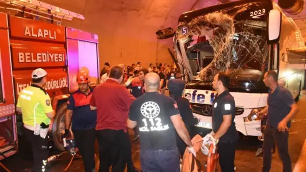 Edinilen ilk bilgilere göre sabah saatlerinde Alaplı istikameti 2. tünel içinde seyir halinde olan 41 EF 957 yolcu otobüsü, aynı yönde önünde ilerleyen kamyona arkadan çarptı.
