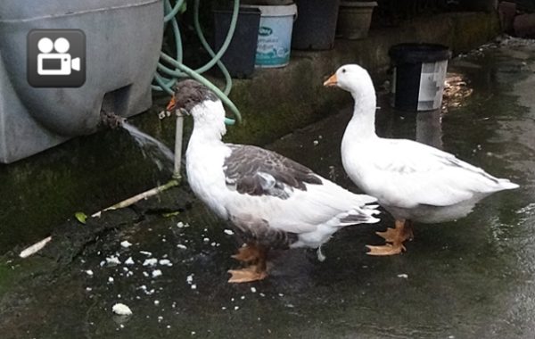 Zonguldak’ın Ereğli ilçesine bağlı Yazıcılar köyünde yaşayan Hanife Balaban’ın Limon ve Portakal isimli Kazları, susuzluklarını gagaları ile açtıkları musluktan suyu içerek gideriyorlar.