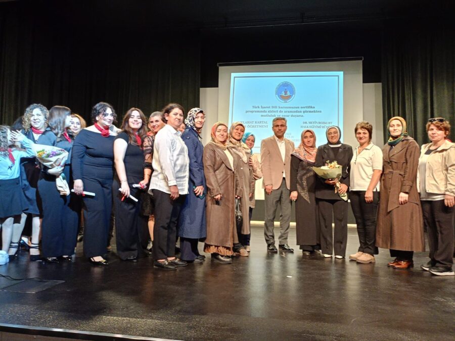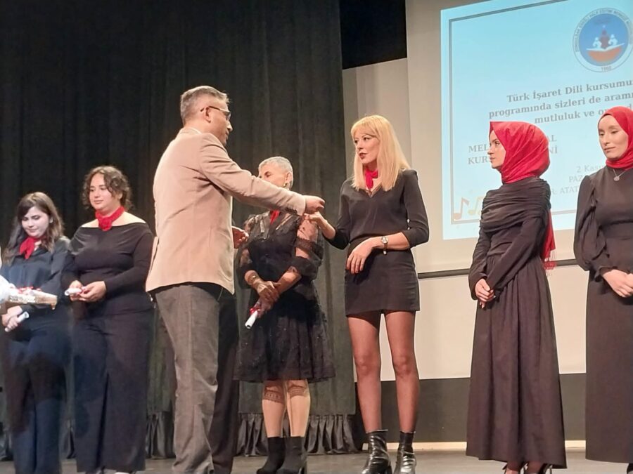 İşaret dili eşliğinde türküler söylendi daha sonra belge törenine geçildi.