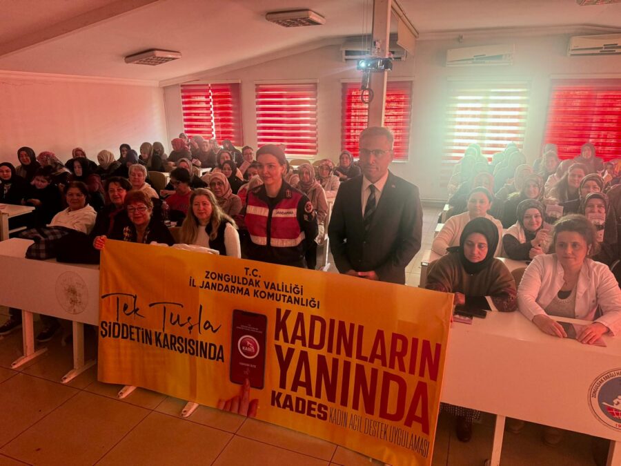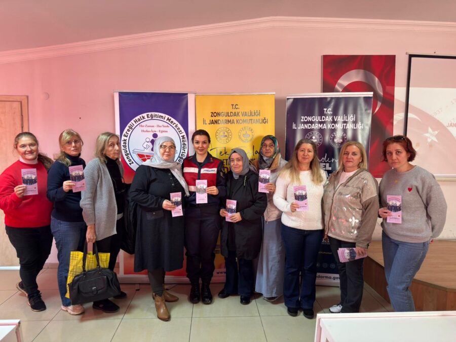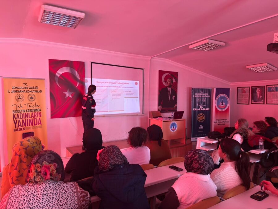 Ardından Kdz. Ereğli İlçe Jandarma Komutanlığı, Aile İçi Şiddetle Mücadele ve Çocuk ve Kadın Kısım Amirliğince, bugün (06 Ocak 2026 günü) Kdz. Ereğli Halk Eğitim Merkezi Müdürlüğünde toplam (160) kadın kursiyere yönelik olarak “Ailenin Önemi, Şiddetin Tanımı ve Çeşitleri, Şiddet Mağdurlarının başvuru yöntemleri, 6284 Sayılı Kanun ve KADES Uygulaması” hakkında bilgilendirme yapıldı.