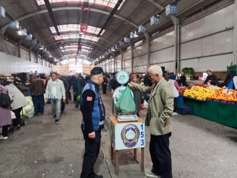 Kdz. Ereğli Belediyesi Zabıta Müdürlüğü ekipleri, pazaryerinde vatandaşların alışverişlerini güven içinde yapabilmesi için denetimlerini sürdürüyor. Ekipler, hem pazarcı esnafının fiyat ve etiket kurallarına uyup uymadığını kontrol ediyor hem de vatandaşların poşetlerine koyulan ürünleri tartarak olası hileli satışların önüne geçiyor.
