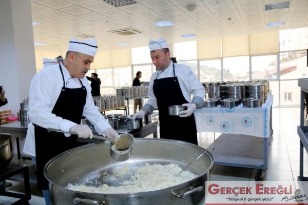 Çok özen gösterdiğimiz bir konu ve özellikle kimseyi rencide etmeden bu işlevi yapıyoruz. Ekiplerimiz hazırlıklarını yapıyor, sefer taslarıyla birlikte evlerine götürüyor. Kapı ağzından ihtiyaç sahiplerine veriyor. Kesinlikle kimseyi rahatsız etmeden, rencide etmeden bu işlemi yapmaya çalışıyoruz. Aşçılarımız lezzetli yemekler yapıyor zaten. Her gün üç kap yemek burada hazırlanacak. Sefer taslarını hazırladık. Kapı ağzından aile sayısına göre yemekleri verilecek. Ertesi gün yemek, götürdüklerinde boşları alıp yemeklerini bırakacaklar. Her gün menüler değişik. Bugün çorba, tas kebabı ve pilav hazırladık. İhtiyaç sahibi vatandaşlarımızı tespitlerini yaptık.