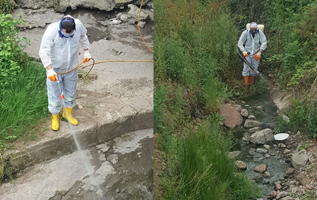 Kdz. EreAYli Belediyesi Veteriner A�AYleri MA?dA?rlA?AYA? VektA�r Kontrol ve A�laA�lama Merkezi Ekipleri tarafA�ndan belediye sA�nA�rlarA� iA�erisindeki dere yataklarA� ilaA�lanA�yor.