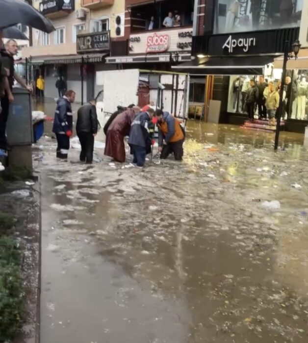 Kdz. Ereğli’de akşam saatlerinde aniden bastıran fırtına, dolu ve sağanak yağmur ilçe merkezini adeta felç etti. Kısa sürede etkisini artıran yağışla birlikte cadde ve sokaklar göle dönerken, trafikte uzun araç kuyrukları oluştu.
