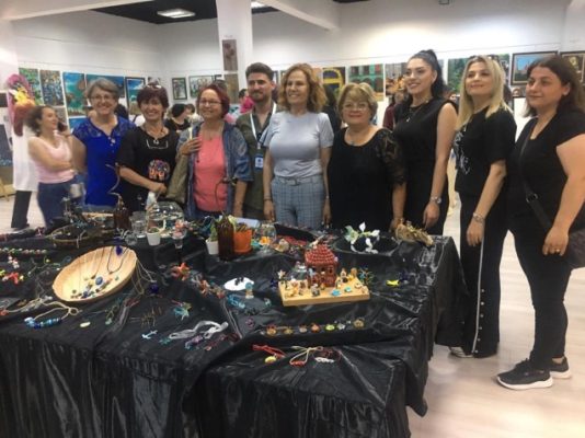 Karadeniz Ereğli ilçesi Kadın Gücü Kooperatif Başkanı Neriman Posbıyık ve yönetim kurulu üyeleri, Halk Eğitim Merkezi tarafından açılan sergide el emeği göz nuru eserleri yapan kadınları yalnız bırakmadı.