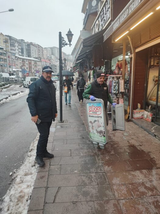 Ekipler, Un Pazarı, Hamamüstü, Ortacami, Akarca Vatan ve Dikili caddelerindeki kaldırımlarda duba, reklam flama, tabela, lastik ve benzeri işgal malzemelerini topladı. İşgalde bulunan iş yerlerine uyarı yapıldı.