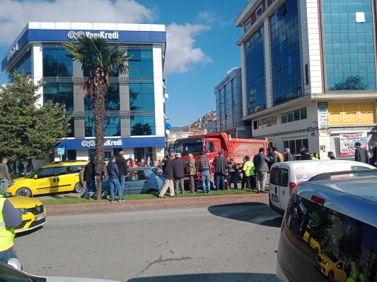 Zonguldak’ın Ereğli ilçesinde sürücüsünün kontrolünden çıkan kamyon, otomobile arkadan çarptı.