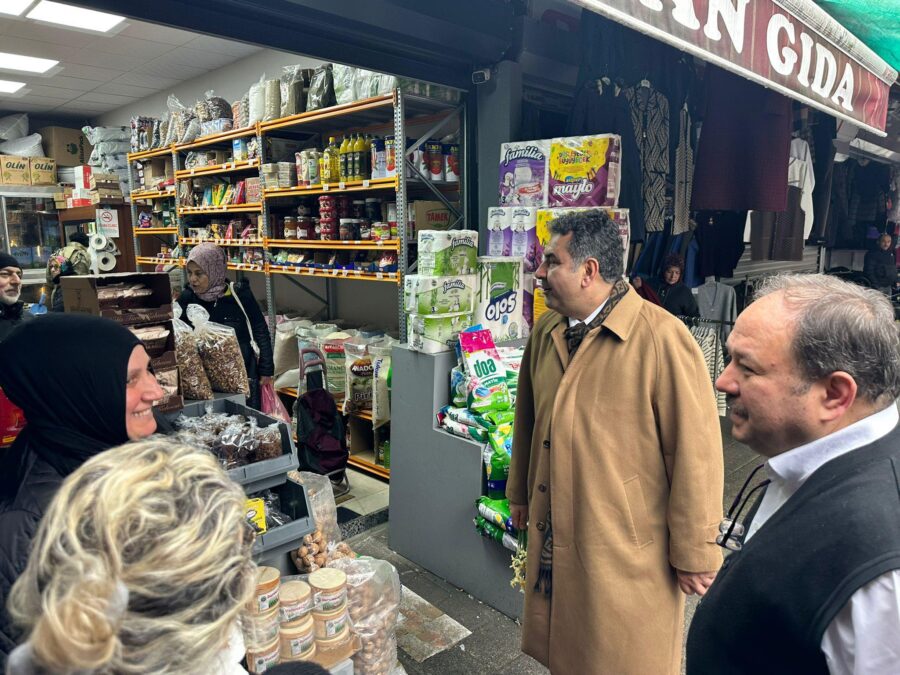 Ziyaret sırasında pazar yeri esnaflarıyla bir araya gelen Kaymakam Yılmaz, esnafın hal ve hatırını sorarak sohbet etti. İşletme sahiplerinden yürütülen çalışmalar hakkında bilgi alan Yılmaz, esnafa kolaylıklar ve bol kazançlar diledi.