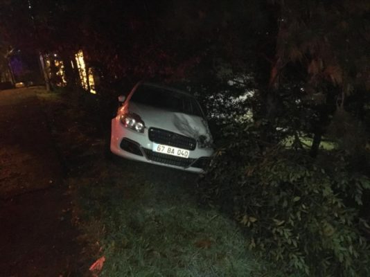 Kaza, saat 03.00 sıralarında ilçeye bağlı Bağlık Mahallesi, Eski Bağlık Kantini Sokak’ta meydana geldi. İddiaya göre direksiyon hakimiyetini kaybeden sürücü önce Eski Bağlık Kantinin kapısına çarptı ardından virajı alamayarak çalılıklara uçtu. Alkollü olduğu iddia edilen sürücü kazanın şokuyla olay yerinden kaçarken çevredeki vatandaşlar durumu 155 polis ekiplerine bildirdi. Olay yerine kısa sürede gelen polis ekipleri kaçan sürücüyü aradı. Aracın kiralık olduğu öğrenilirken, otomobil çekici vasıtası ile kaza yerinden kaldırıldı. Polis ekipleri, olay yerindeki çalışmalarını tamamladıktan sonra özel ve devlet hastanelerini de kontrol etti. Polis, alkollü olduğu iddia edilen araç sürücüsünü bulmak için çalışma başlattı.
