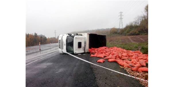 Zonguldak’ta kömür yüklü kamyonun devrilmesi sonucu meydana gelen kazada, 5 kişi yaralandı.