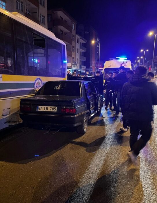 Karadeniz Ereğli ilçesi solak yol ayrımında karşı şeride geçen otomobil halk otobüsüne çarparak durabildi.