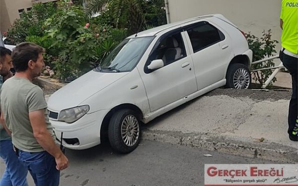 Karadeniz Ereğli ilçesinde sürücüsünün direksiyon hâkimiyetini kaybettiği otomobil korkuluklara çarparak durabildi. Evin bahçesine uçmaktan son anda kurtulan otomobilin sürücüsü sağlık ekiplerinin müdahalesinin ardından devlet hastanesine kaldırıldı.