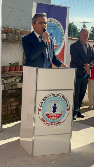 Hasçelik, konuşmasında SYD Vakfı Müdürlüğünün kursiyerlerin eğitim alacakları yerlerin tahsisi, gerekli materyallerin temin edilmesi, öğle yemeği sağlanması ve cep harçlıklarının ödenmesi gibi konularda destek sunduğunu, Kdz. Ereğli Kaymakamlığı öncülüğünde mesleki kursların başarıyla tamamlandığını, dile getirdi.