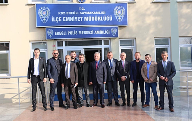 Zonguldaka��A�n EreAYli ilA�esi MilliyetA�i Hareket Partisi EreAYli ilA�e baAYkanA�, Partinin il baAYkan yardA�mcA�sA� Kaya Karatepe ve yA�netim kurulu A?yeleri, ilA�e emniyet mA?dA?rlA?AYA?nA? ziyaret ederek hem polis haftasA�nA� hem de MiraA� kandillerini kutladA�.