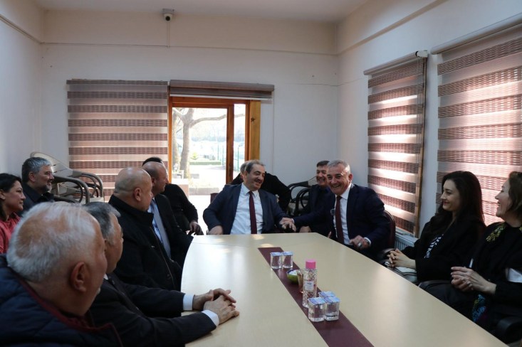 Heyet DTO’nun ardından Kdz. Ereğli Gazeteciler Derneği Başkanı Şafak Erel ve Yönetimi’ni ziyaret etti. Seçime kuzeni Murat Sesli ile girmeye mecbur bırakıldıklarını, kanunsuz hukuksuz hiçbir şey olmadığını vurgulayan Kdz. Ereğli önceki dönem Belediye Başkanı Murat Sesli konuşmasında; “Basın bizim için çok önemli. İnşallah Ereğli’ye hizmet ederken sizlerin de bizlere büyük katkısı olacak. Arkadaşlarımızla beraber bir yola çıktık, projelerimizi hazırladık. Seçimleri alacağımıza inanıyorum. Yapılanlar Ereğli için olacak, kimse şahsına hiç bir şey istemiyor. Ereğli için en güzeli olsun istiyoruz. Bir yarışa girdik, seçim dostluk içinde geçsin. Hepimiz dostuz. Birbirimizin yüzüne bakamayacak duruma gelmeden geçsin. Şafak abi çok yetenekli bir futbolcuydu. Biz i Kdz. Ereğli Belediyespor’u Trendyol 1. lige çıkartmak için mücadele edeceğiz. Futbolu sevmek başka, bilmek başka. Yöneticilikte başka, yönetmek de başka. Ereğli Belediyespor yönetiminde topa ayağını vurmayan arkadaşlarımız var, maça çıkmayan arkadaşlarımız var. Hali ile başarı gelmiyor. Oraya bilenleri getireceğiz. Çok merak edilen bir soru var; oda iki Murat Sesli. Benim cezam ile ilgili bir sıkıntı yok sadece seçime girmem ile alakalı bir sıkıntım var. Benim ticaret yapmama, yurt dışına çıkmama, iş yeri açmama hiç bir engel yok. Bununla ilgili 3 ay önce Zonguldak’a başvuru yaptık. Maalesef siyaset adalete karıştı, yeniden yargılanmama mani oldular. Durum böyle olunca haksızlığa uğradığımızı iddia etmiyorum, net söylüyorum: Haksızlığa uğradık. Bizde böyle bir yol seçmeye mecbur kaldık. Girmemizde hiçbir hukuki engel yok. Murat Sesli olaraktan seçimi de alıyoruz. Mazbatayı aldıktan sonra benim belediye de herhangi bir makama atanmamda hiçbir kanunsuz olay yok, engel de yok. Belediyeyi ekip olarak yönetmeye başlıyoruz. Ben miting yaptım, mitingde bana izni kaymakam verdi. Mitingde yeri belediye tahsis etti. Mitingde önlemi emniyet aldı. Otobüsümüz 1,5 aydır geziyor. Bunlar kanunsuz olsa devlet adama bir adım bile attırmaz. Pankartlarımız asılıdır. Bundan önce Cumhurbaşkanımız Sayın Recep Tayyip Erdoğan’a ‘muhtar bile olamaz’ diyorlardı. Kendisi de belediye başkanı iken görevden alındı, benim gibi. 2002 yılında AK Parti kurulup seçimlere girdiği zaman Abdullah Gül Başbakan oldu. Tayyip Bey içinde Siirt Milletvekili istifa ettirilerek, Siirt Milletvekilinin yerine milletvekili seçildi. Geldi başbakanlığı aldı. Oldu mu? Oldu. Biz ilkleri başaracağız. Seçimi alarak Türkiye tarihine geçeceğiz. Haksızlığa karşı geldiğimiz için biz adayız. Bize yapılan adaletsizliğe karşıyız. Siyaseti adalete karıştırdıkları için aday olduk. Biz iki tane Murat Sesli değiliz, 31 tane Murat Sesli var. Murat Sesli burada, bize cephe almalarına gerek yok. Yapacaklarını anlatsınlar. Kim ne yaparsa yapsın, bizde yapacaklarımızı anlatıyoruz” dedi.