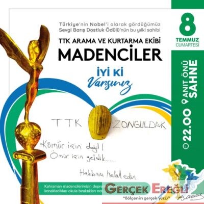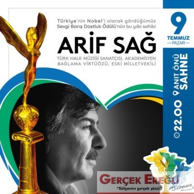 6-9 Temmuz’da yapılacak ve Ereğli halkının bir kez daha Sevgi, Barış, Dostluk diyeceği Türkiye’nin En Büyük Ödüllü Festivali’nde, SBD ödülleri 6 Şubat depremlerinde kahramanlıklarıyla gururumuz olan Zonguldak’lı Madencilere, Türk Halk Müziği’ne katkıları nedeniyle Arif Sağ’a ve Türkiye Şampiyonu olan Kdz. Ereğli Belediyespor Paravolley Takımı ile Para-Yelken Takımı’na verilecek.