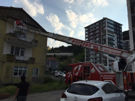 Zonguldak’ın Ereğli İlçesinde, bir binanın çatı katında mahsur kalan kedi, belediye itfaiye ekipleri tarafından kurtarıldı.