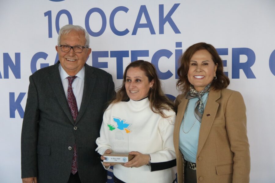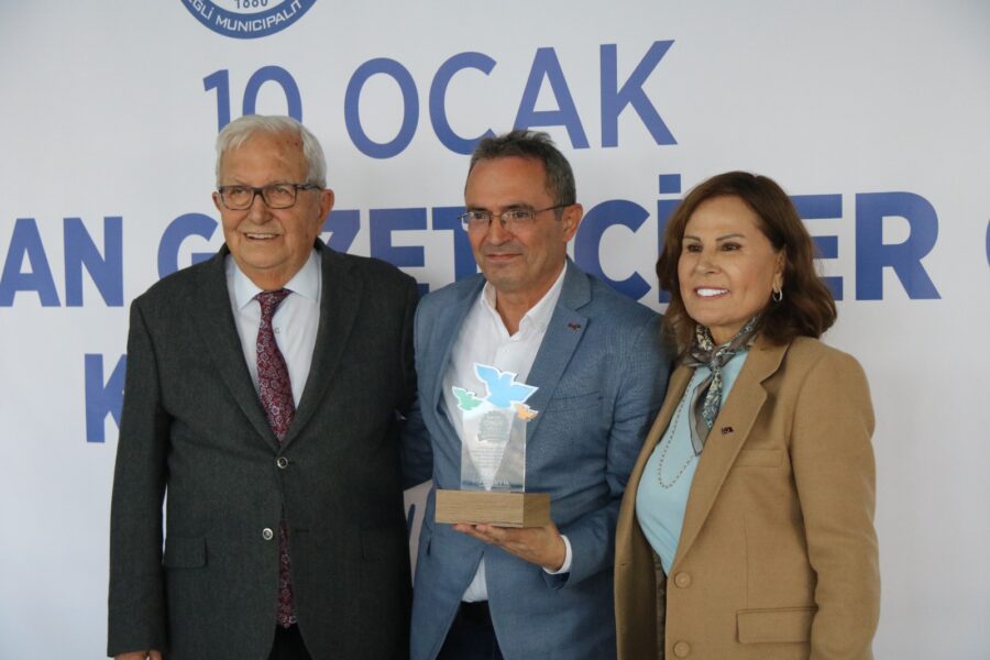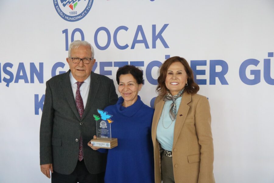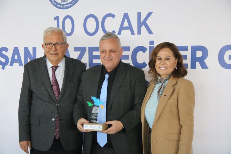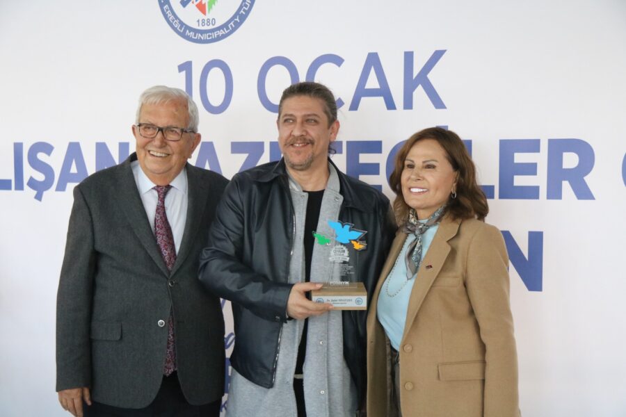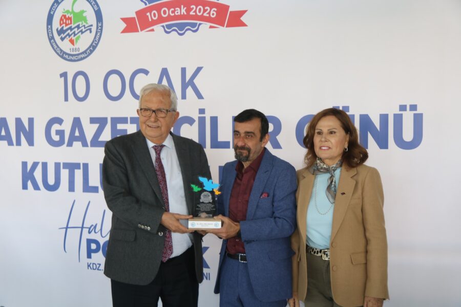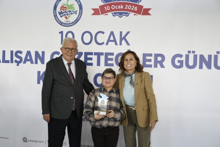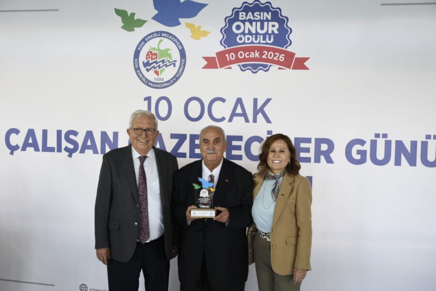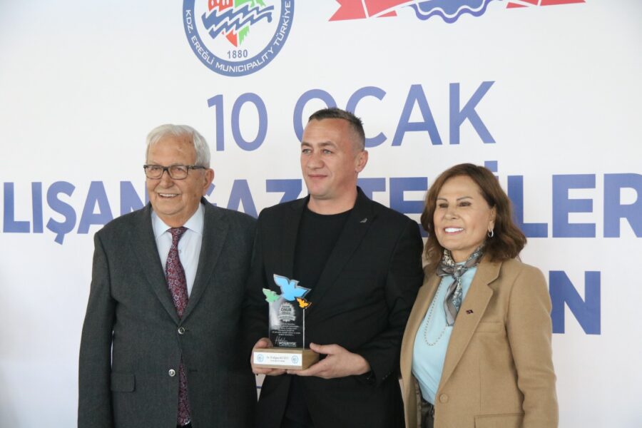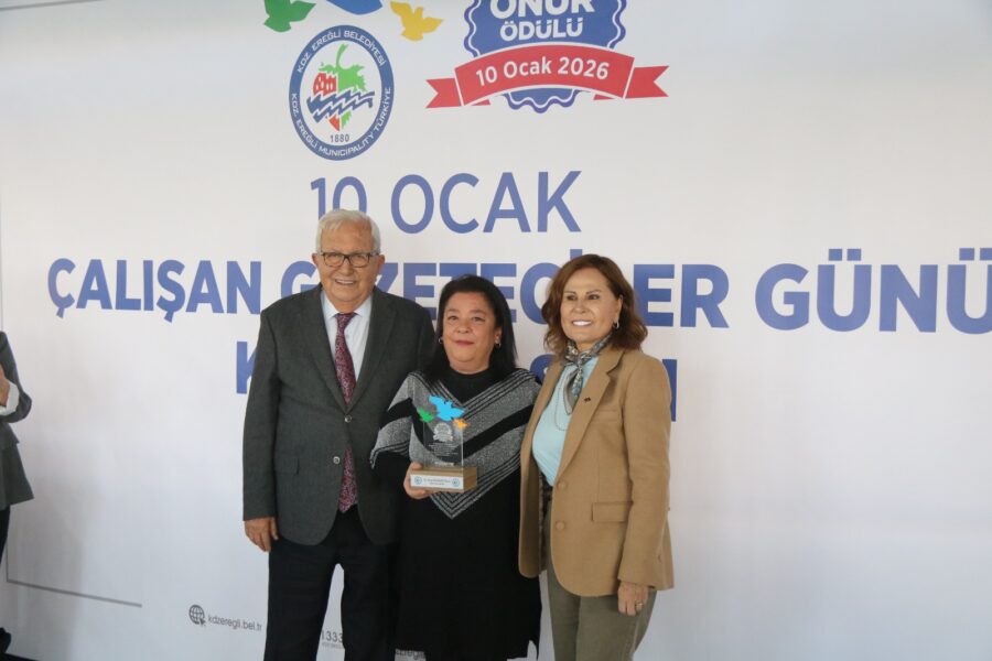 Başkan Posbıyık ve eşi Neriman Posbıyık, 25 yıl ve üzerinde Ereğli’de gazetecilik mesleğine emek veren Sina Çıladır, Necati Günay, Şafak Erel, Kurtuluş Ayyıldız, Hüseyin Orhan, Altan Akçakese, Ali Ceylan, Fikri Kapan, Doğan Gönüllü, Hasan Sarıalp, İsmet Keskin, Sinan Kabatepe, Mustafa Kemal Bektaş, Bilgin Avcı, Özge Cerrah, Serpil Kasapoğlu, Seyhan Dikay, İlknur Turt, Derya Gökbulut Sağlam, Tuncay Tokay, Yasin Ören, Serkan Aydemir, Yusuf Zobar, Muhammet Balaban, Ersen Berk Çelik, Elif Yapıcı, Hülya Çoker, Sibel Pınar, Arzu Tekin, Erdoğan Kutlu, Hakan Kurttekin, Hasan Haşıl, İbrahim Solmaz, Haydar Yağız, Recep Akkaya ve Şafak Negüzel’e ‘Basın Onur Ödülü’ plaketi takdim etti.