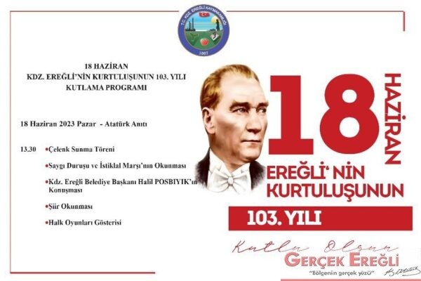 18 Haziran Kdz.Ereğli’nin Kurtuluşunun 103. Yılı Kutlama Programı belli oldu.