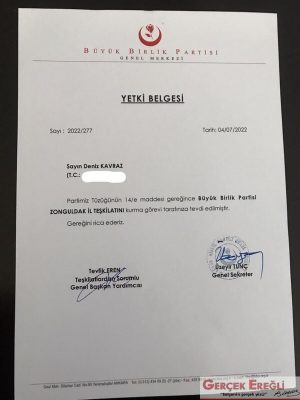 Büyük Birlik Partisi (BBP) Zonguldak İl Başkanlığına bir süre önce AK Parti’den istifa eden Deniz Kavraz atandı.