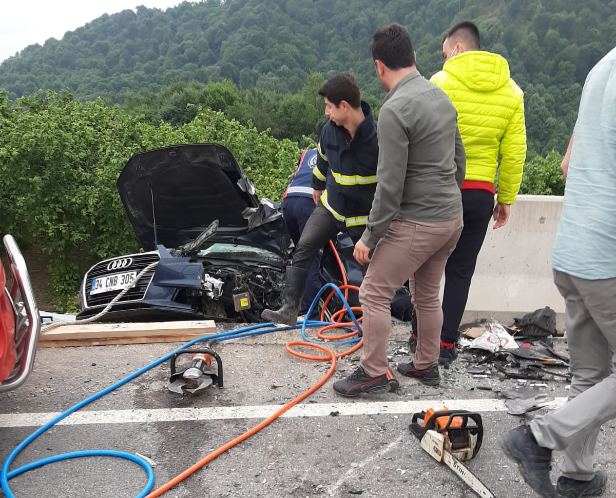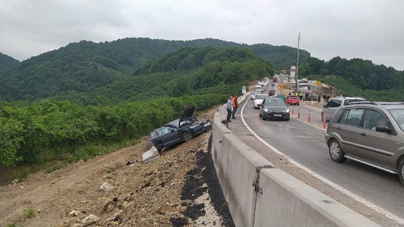 Akşam saatlerinde  meydana gelen kazada, Kdz. Ereğli’den yüklediği sac rulo ile Düzce‘ye giden G.A. idaresindeki 67 SN 219 plakalı tırın dorsesi, karayolunun daha önce heyelan yaşanan mevkiinde karşı yönden gelmekte olan S.Y.E.’nin kullandığı 34 CBN 305 plakalı otomobille çarpıştı. Çarpışmanın etkisiyle otomobil, yol kenarında bulunan beton bariyerleri aşarak şarampole uçtu.
