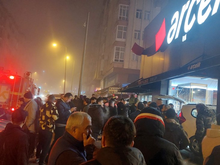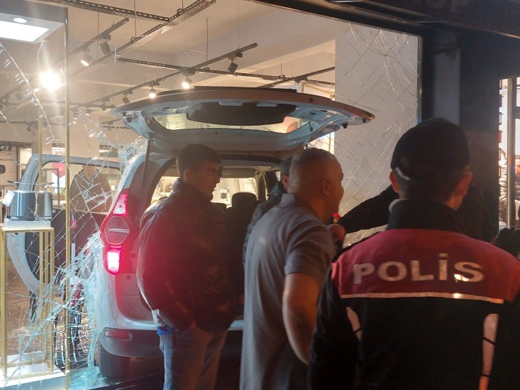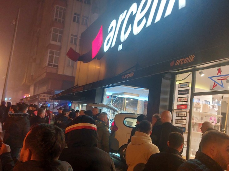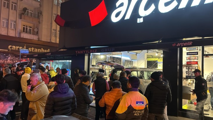 Çarpışmanın etkisiyle savrulan Anadolu Hastanesine ait araç, Arçelik Beyaz Eşya dükkanına girdi.