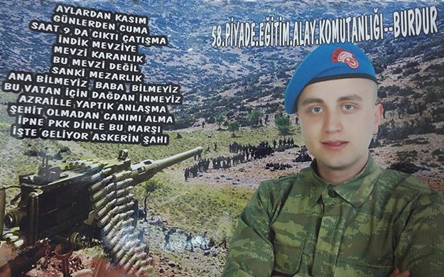 Acemi birliği görevini Burdur’da yaptığı sırada ailesine fotoğrafını gönderen şehit Kenan Döngel’in şehitler için bir de şiir yazdığı ortaya çıktı. Şehidin ailesinin eve astığı fotoğrafta yer alan şiirde şu dizeler yer alıyor: