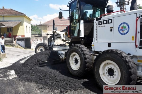 Kdz. Ereğli Belediyesi, bozulan ve yeniden yapılan yollarda sıcak asfalt kaplama çalışmalarına başladı.