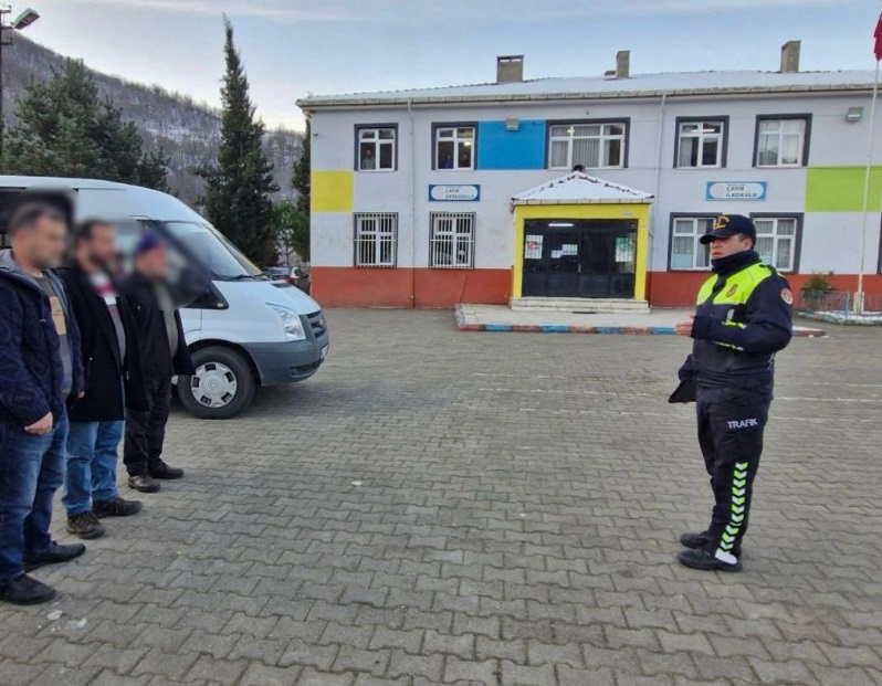 Trafik Jandarması Timlerince yarıyıl tatili öncesi şoförlere ”Okul Servis Araçları Yönetmeliği ve Trafik Kuralları” konusunda bilgilendirmeler yapılmıştır.
