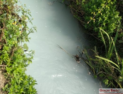 Karadeniz Ereğli ilçesine bağlı Hamzafakıhlı mahallesindeki derenin rengi değişti.