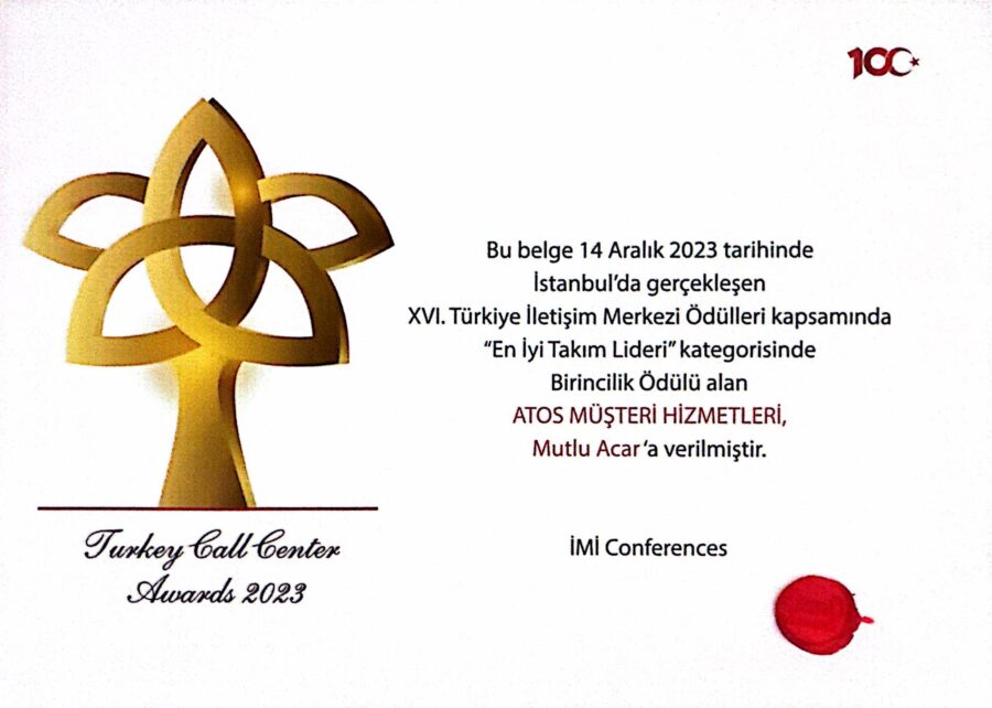 Türkiye Gall Center Awards 2023 kapsamında İstanbul’da düzenlenen “Türkiye Çağrı Merkezi Ödülleri” kapsamında “En İyi Takım Lideri” Kdz Ereğli’den Mutlu Acar oldu.